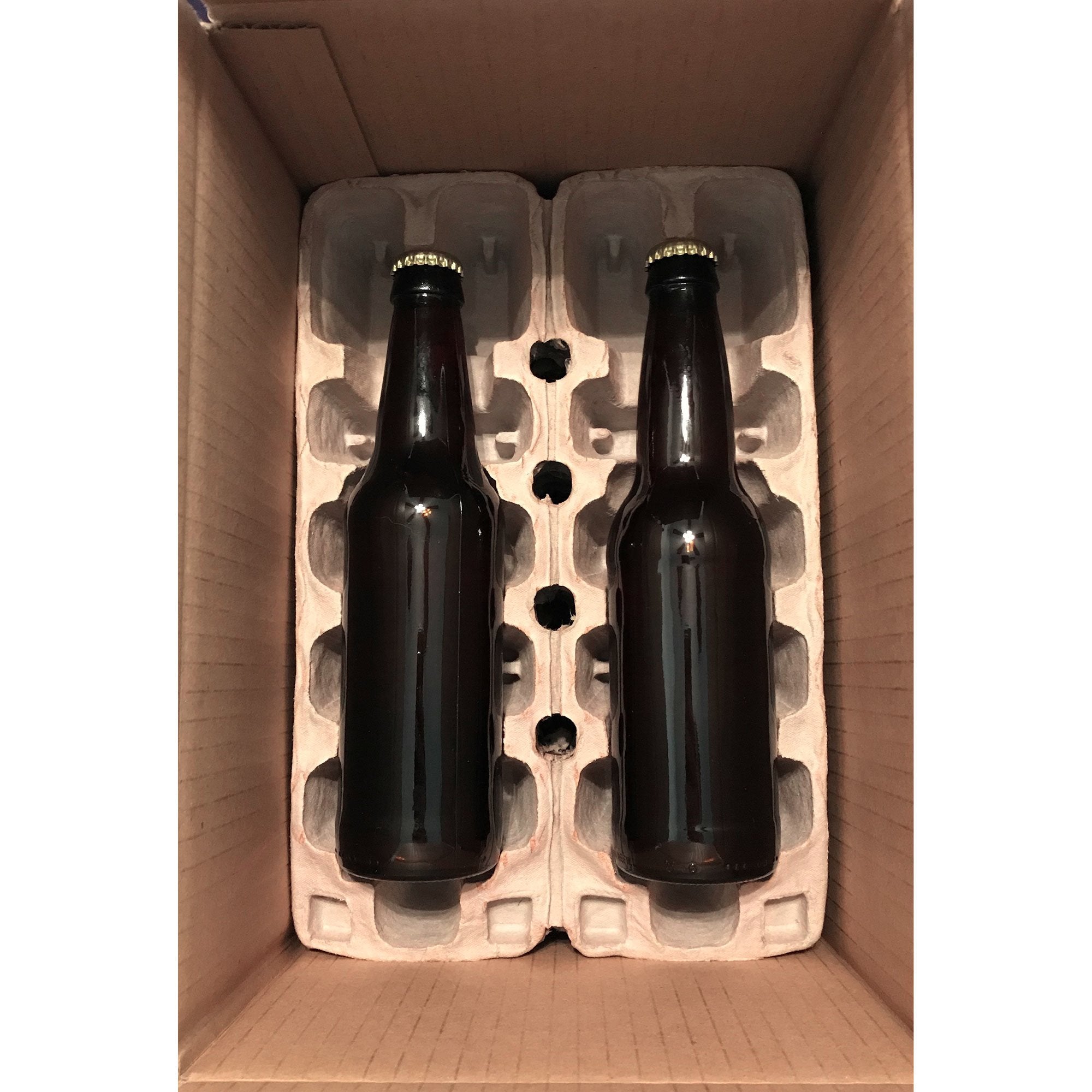 Securely cradles, protects, and immobilizes 12 oz beer bottles. Available in quantities of 1, 2, 4, 6 and 12 to fit any need or shipping container. Stackable. Biodegradable. Re-usable.